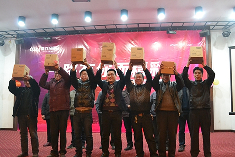隨著兩位主持人的洪亮嗓音,團年晚宴序幕正式拉開。宴會伊始,總經理穆國強起身致祝酒詞,穆總真切表達了對奇力全體員工的15年來的感恩情懷和對2014年大家取得的成績的高度肯定,最重要的是表達了對員工及家人的新年祝愿。在穆總的真摯祝福下,宴席正式啟動。