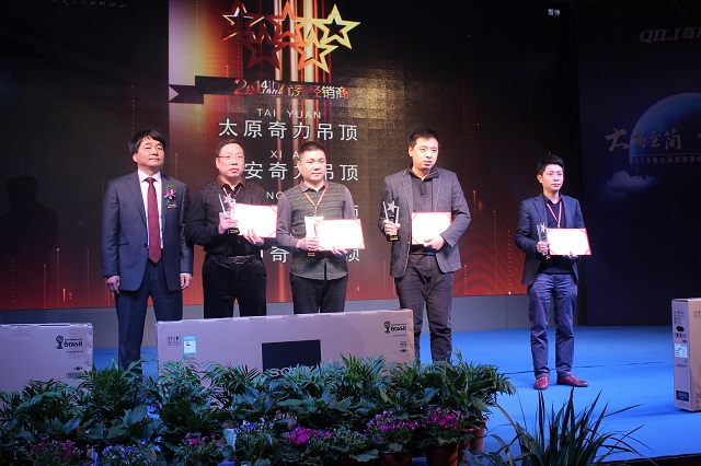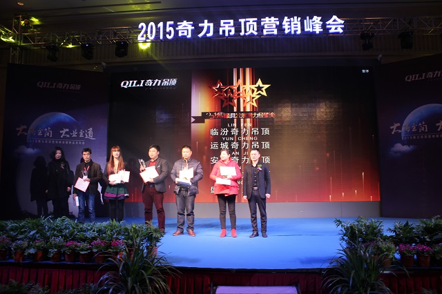 會議伊始,奇力吊頂總經理穆國強先生發表了慷慨激昂的講話。穆總說,2014年,在全體家人的努力下,我們的汗水換來了豐收,希望得到了實現,奇力吊頂取得了矚目的成績。2014年全年改造專賣店超過100家,改造的專賣店當中實現了至少50%的業績增長,目前大部分專賣店已擁有了自己的小團隊,部分經銷商擁有超過20人的銷售團隊,基本上每店平均達到一季度一場大型促銷,并且促銷成功率100%。