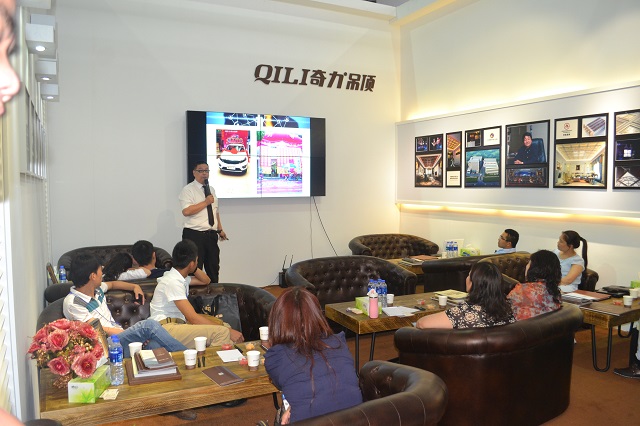 在熱烈的掌聲中,奇力的營銷總監(jiān)登臺演講,從奇力的6大優(yōu)勢開始,自產(chǎn)品、設(shè)計、售后等與終端門店經(jīng)營息息相關(guān)的各個方面,為經(jīng)銷商提供保障,無憂經(jīng)營,輕松成就大商。