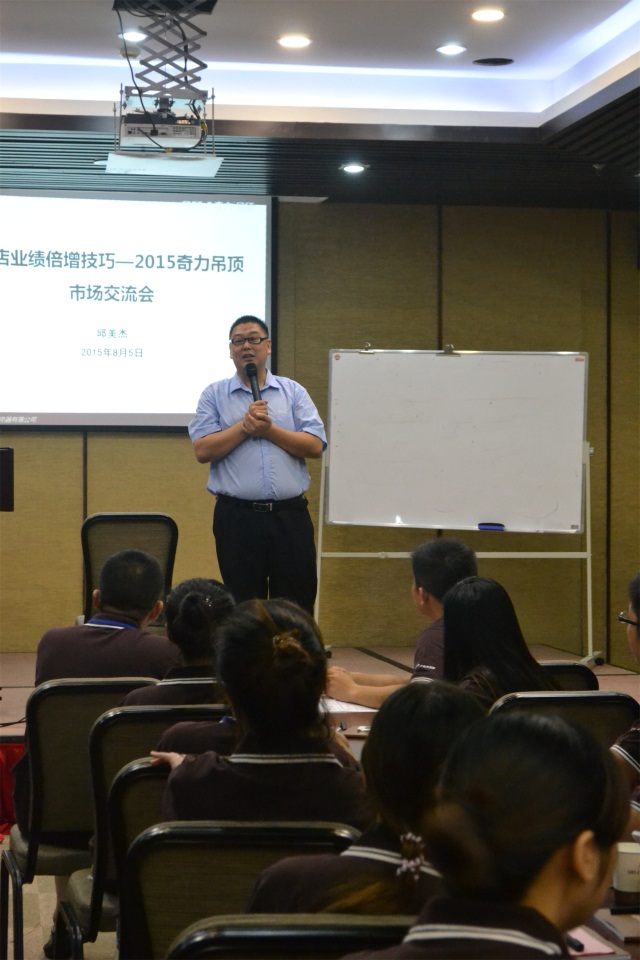 上午,邱總激情澎湃的從門店業績如何提升、標準化門店如何管理等方面,細化的介紹、引導學員從品牌形象、團隊組合、產品渠道、服務禮儀、銷售技巧、店面位置等多方面討論自己如何經營好自己的門店。學員們聽后,紛紛各抒己見。會場氣氛活躍,學員們積極響應。