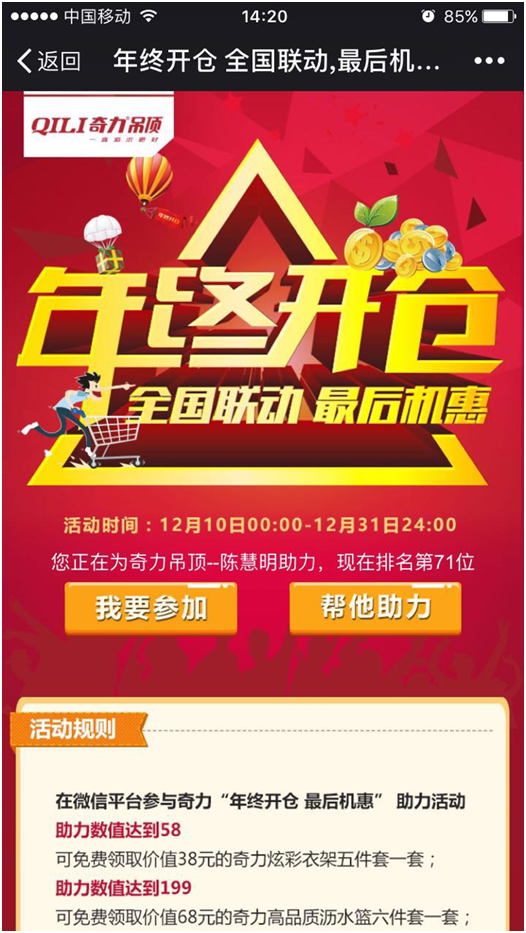 本次“年終開倉 最后機惠”還有一項微信助力活動,您可以在微信平臺參與。